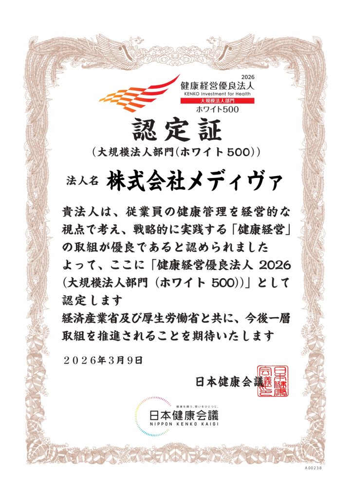 >>メディヴァの健康経営への取り組みは、こちらをご覧ください。