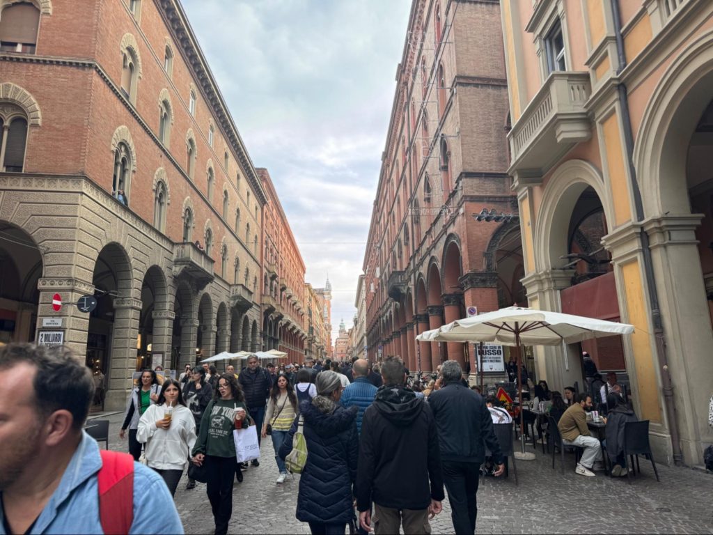 ところがイタリアの中では最も生活の質が高い街らしい。よく見ていくと建物の色彩ほとんどがレンガの赤茶色を基調としている。街並みが徐々にボロネーゼに見えてくるほど、そして暗い暖色の建物が光を通さないくらい密集して建てられていた。