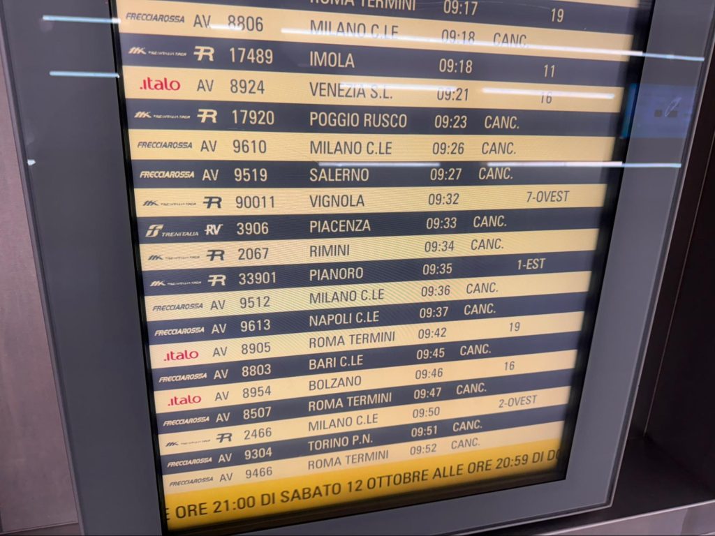 日曜日ということもあるのかもしれないが、こんなにすぐに電車が止まってしまっては堪らない。掲示板で運行している電車のほとんどがitaloだけど、リミニへは走っていない。