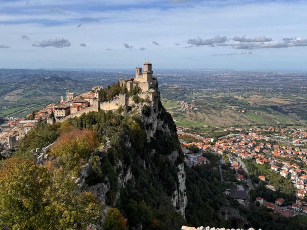 ここでサンマリノ共和国を少し紹介したいと思う。現存している最古の共和国で国土面積は山手線の内側くらいの大きさだ。険しい丘陵地帯に囲まれていて、国自体も山頂にある天空都市だ。国全体が他の1ヵ国に囲まれている国を包領というが、実は世界に3ヵ国しかない。