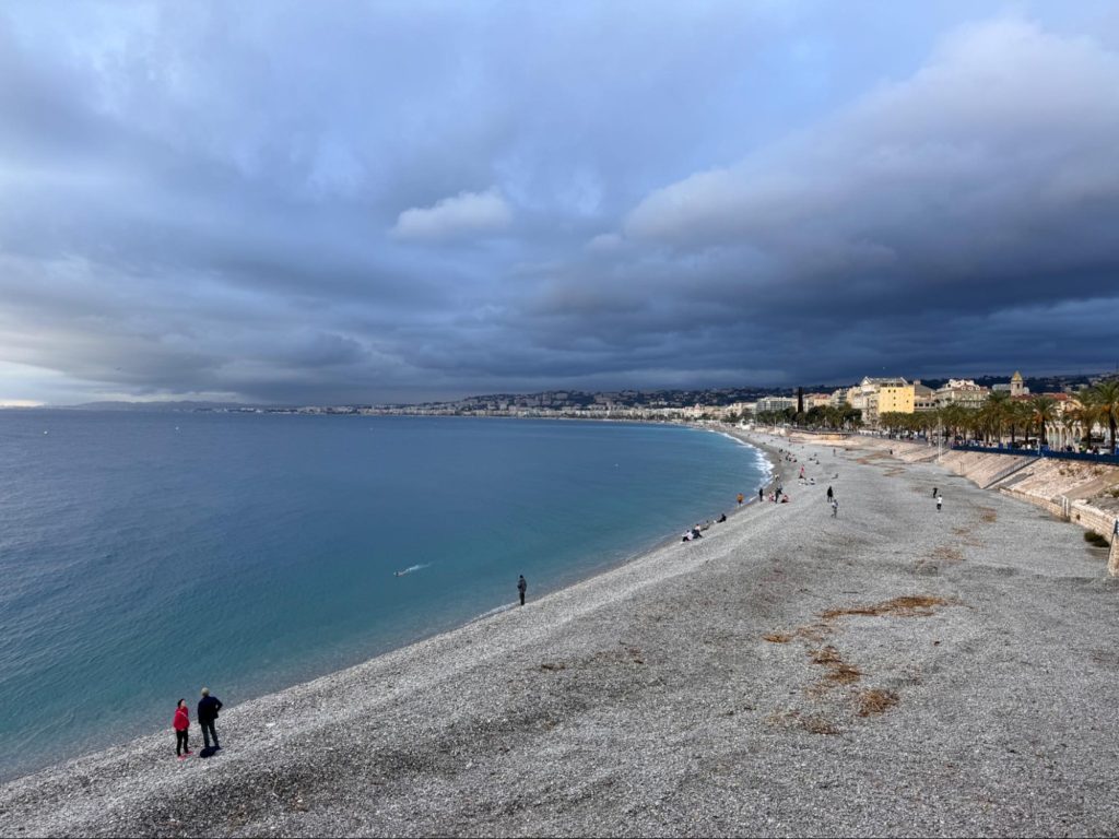 発音できるようになったのでお礼を言って、外に出てみる。地中海に秋が訪れていると感じさせる小雨が降っていた。夏は暖かく乾燥しているが、冬になるにつれて雨が降るのが地中海性気候の特徴らしい。羽が折れている折りたたみ傘を広げて、目的の1つであるコート・ダジュールの方へ歩いた。海の青色が空の色だとすれば、曇りなわけだから当然、名前にふさわしい青さはない。とりあえず、観光地にある「I LOVE NICE」のモニュメントの前で写真を撮って、食事をすることにした。